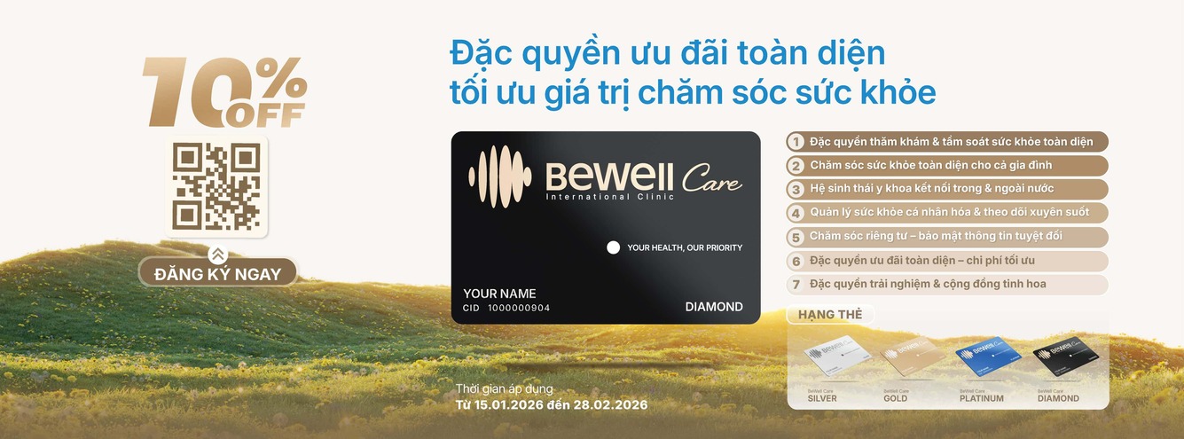 Kết hợp công nghệ y tế hiện đại ứng dụng AI, đội ngũ bác sĩ chuyên gia giàu kinh nghiệm và quy trình chăm sóc cá nhân hóa, BeWell đồng hành cùng khách hàng trên hành trình nâng cao sức khỏe, tối ưu năng lượng và cải thiện chất lượng sống mỗi ngày.