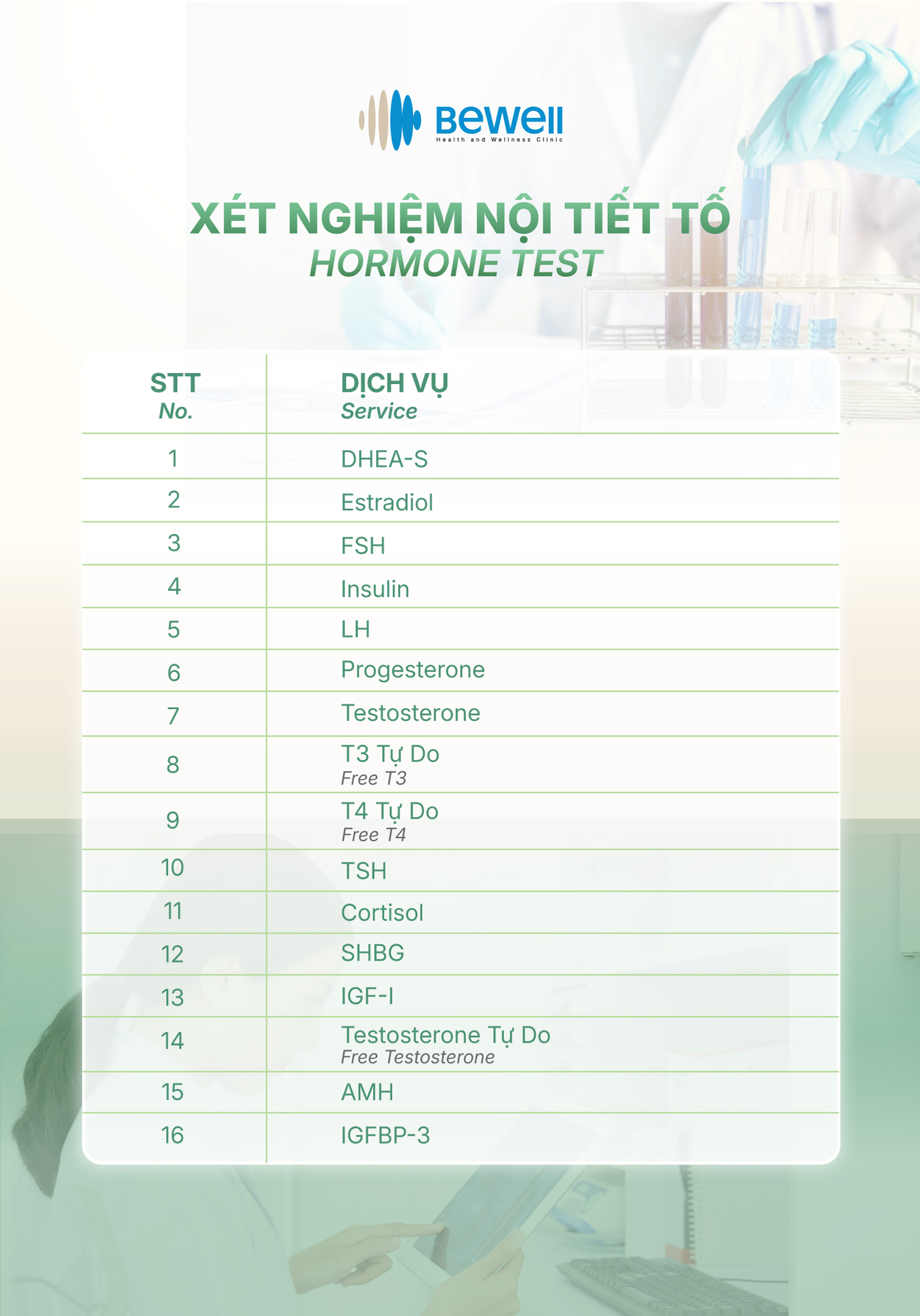 - Đánh giá cân bằng hormon sinh học: phân tích hormon có hoạt tính sinh học, hỗ trợ chẩn đoán chính xác và cá nhân hoá hướng điều trị