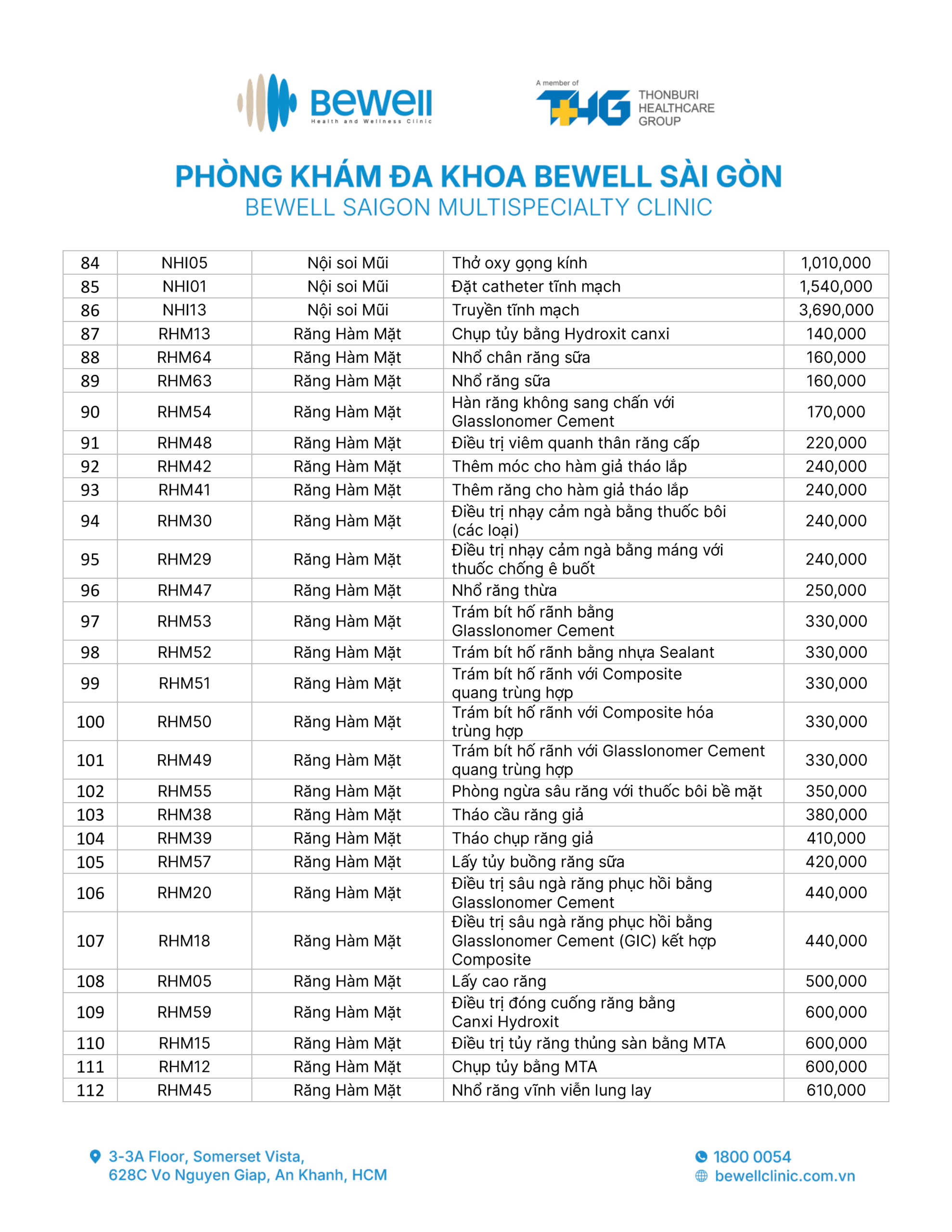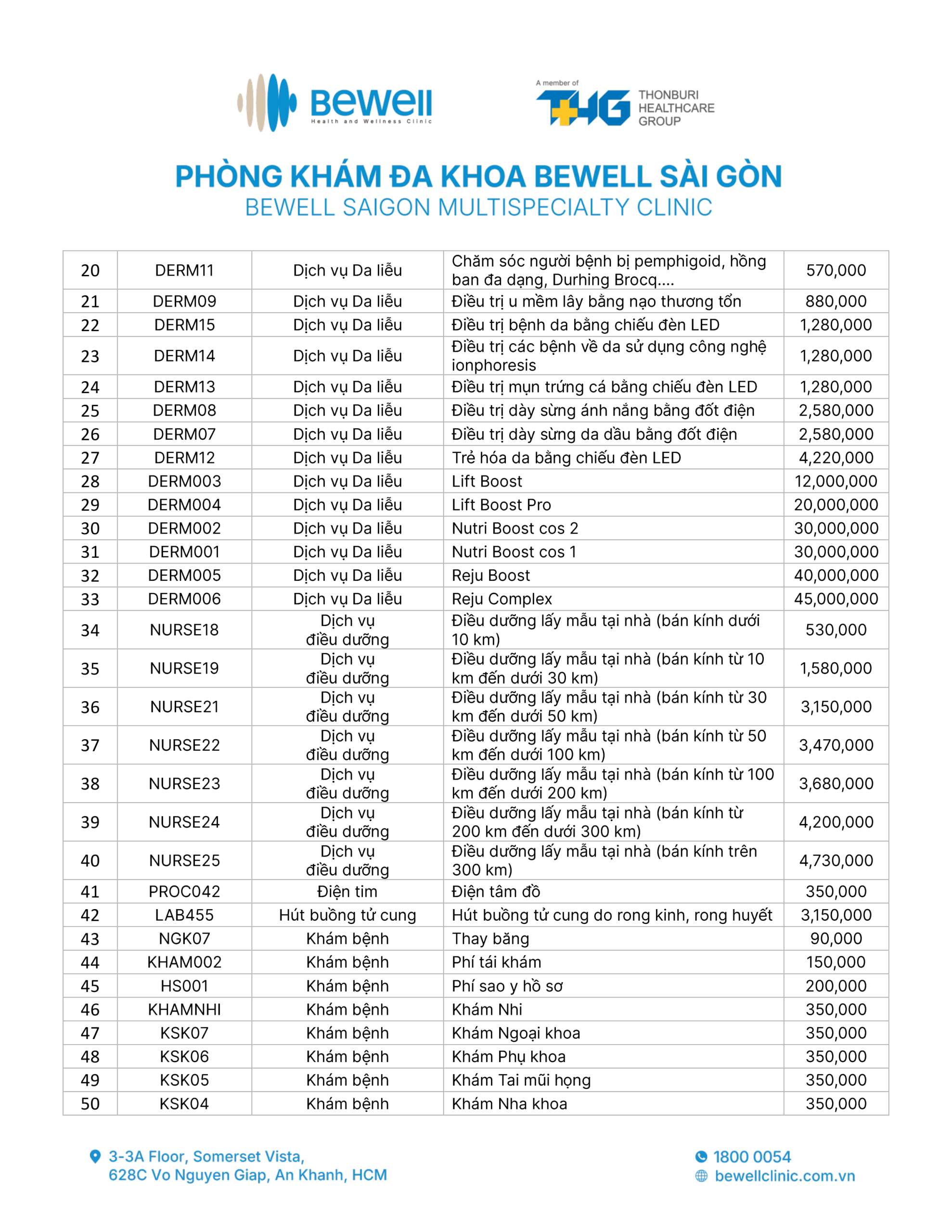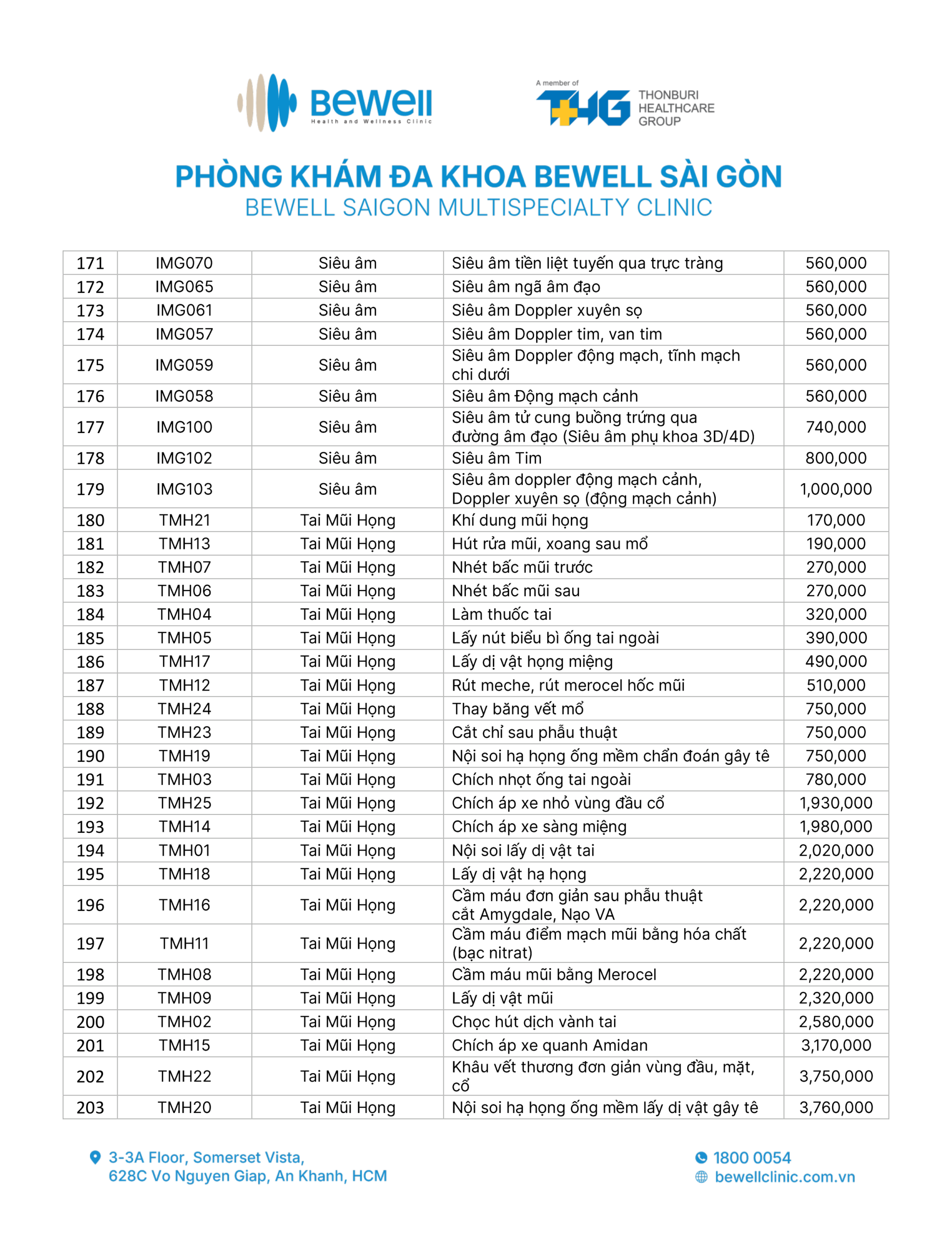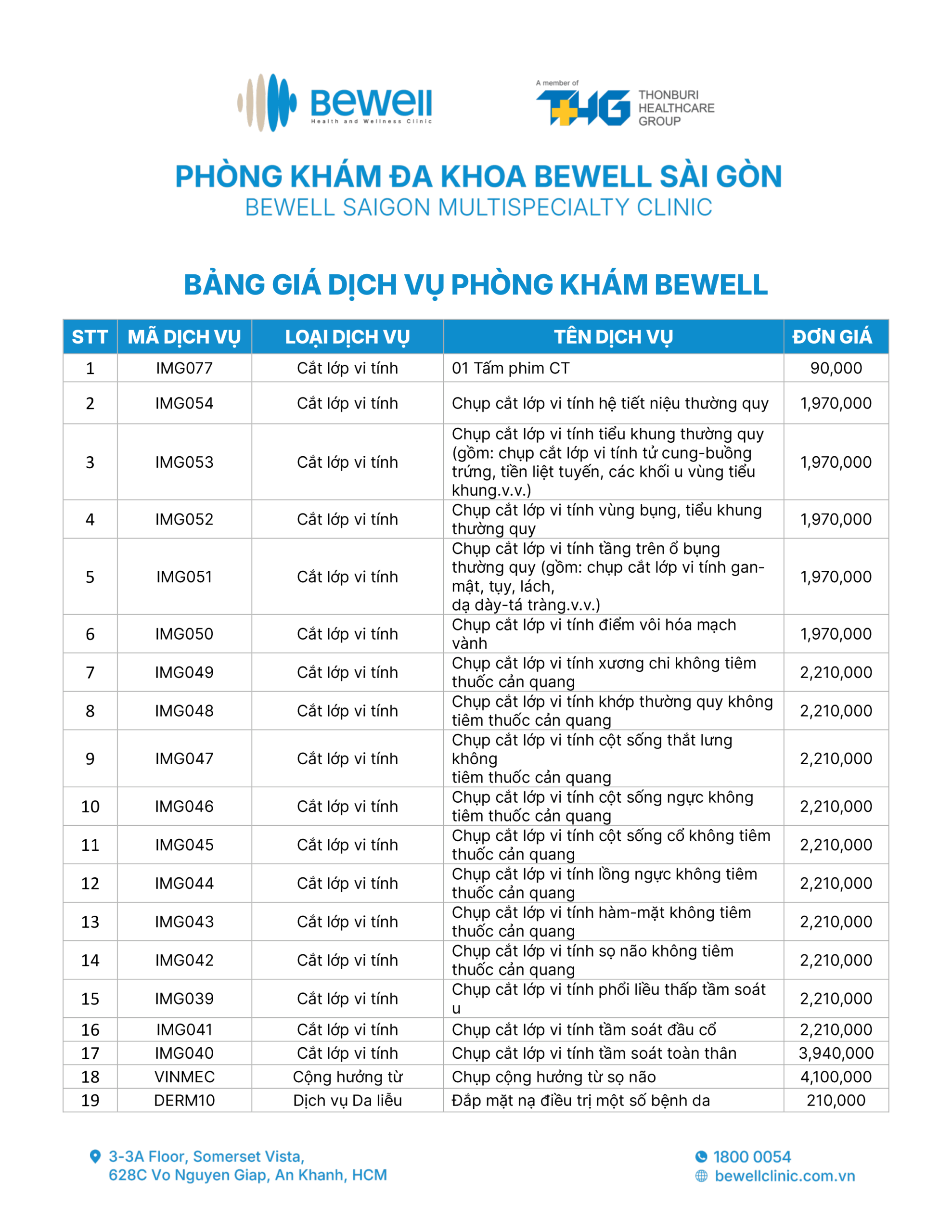 BẢNG GIÁ DỊCH VỤ