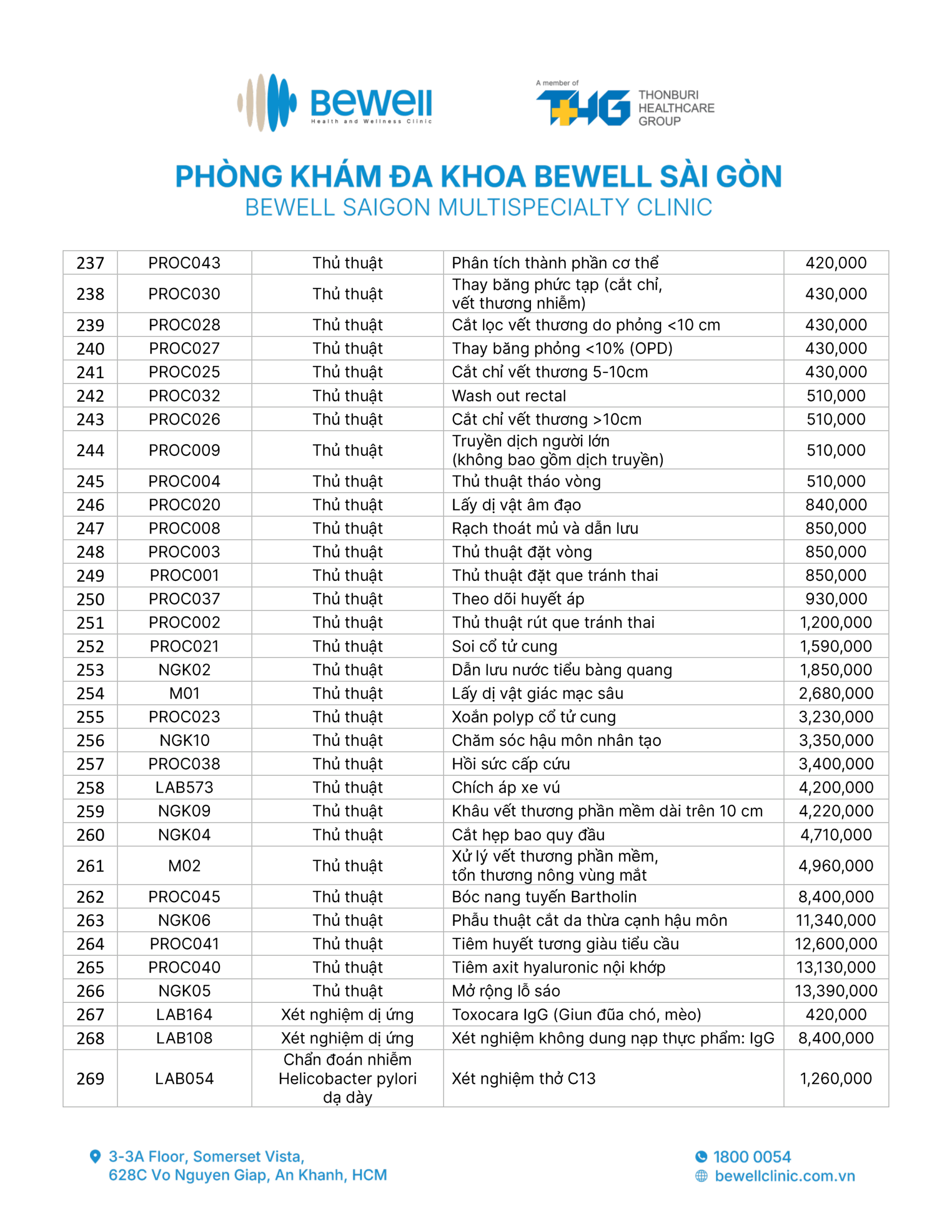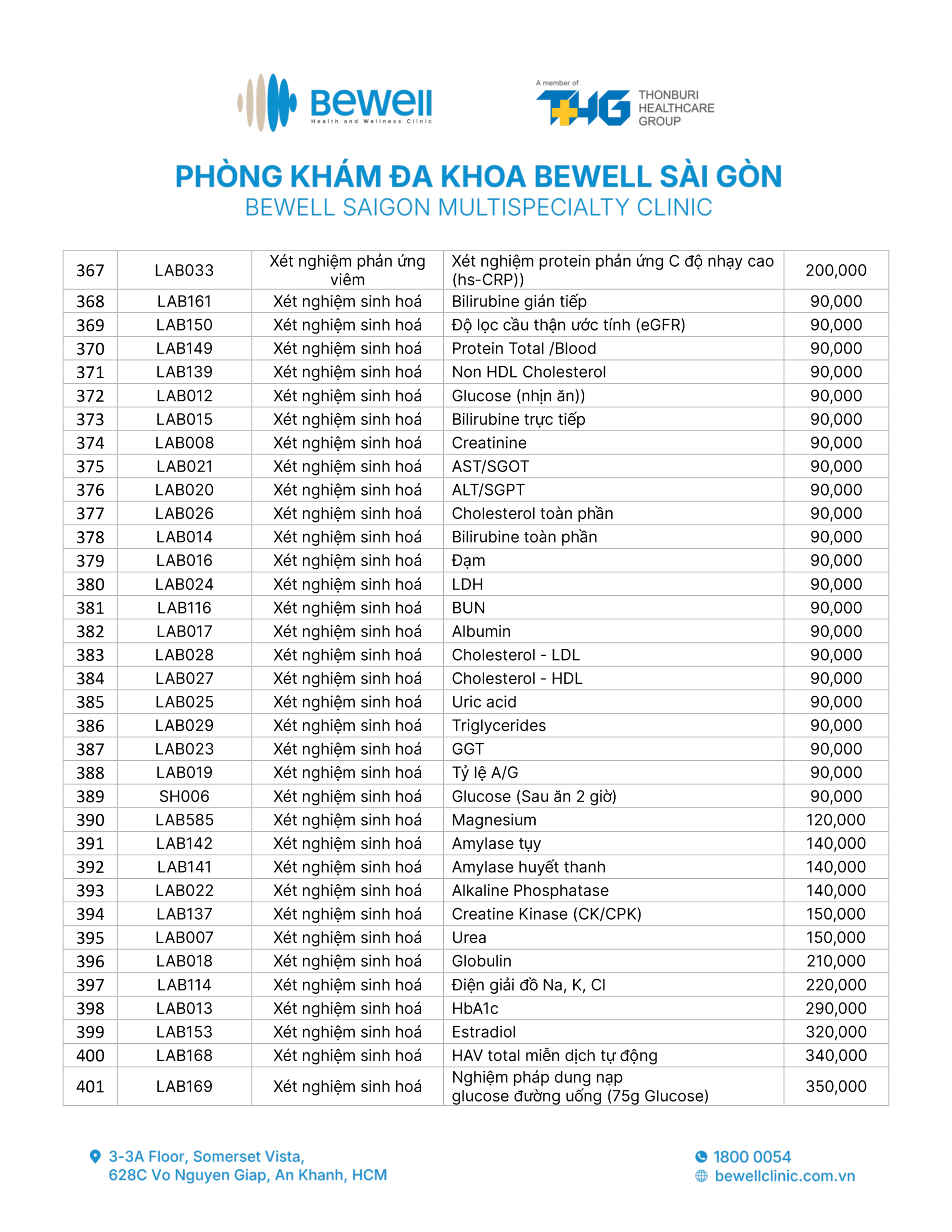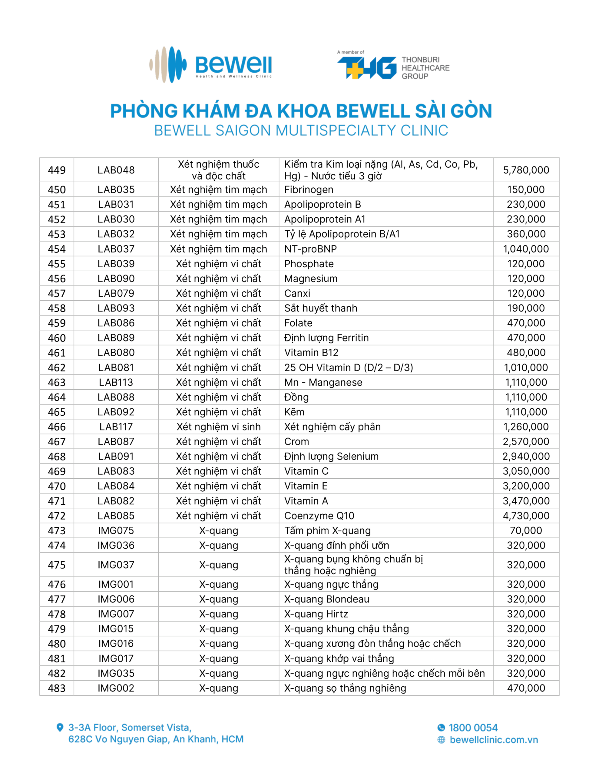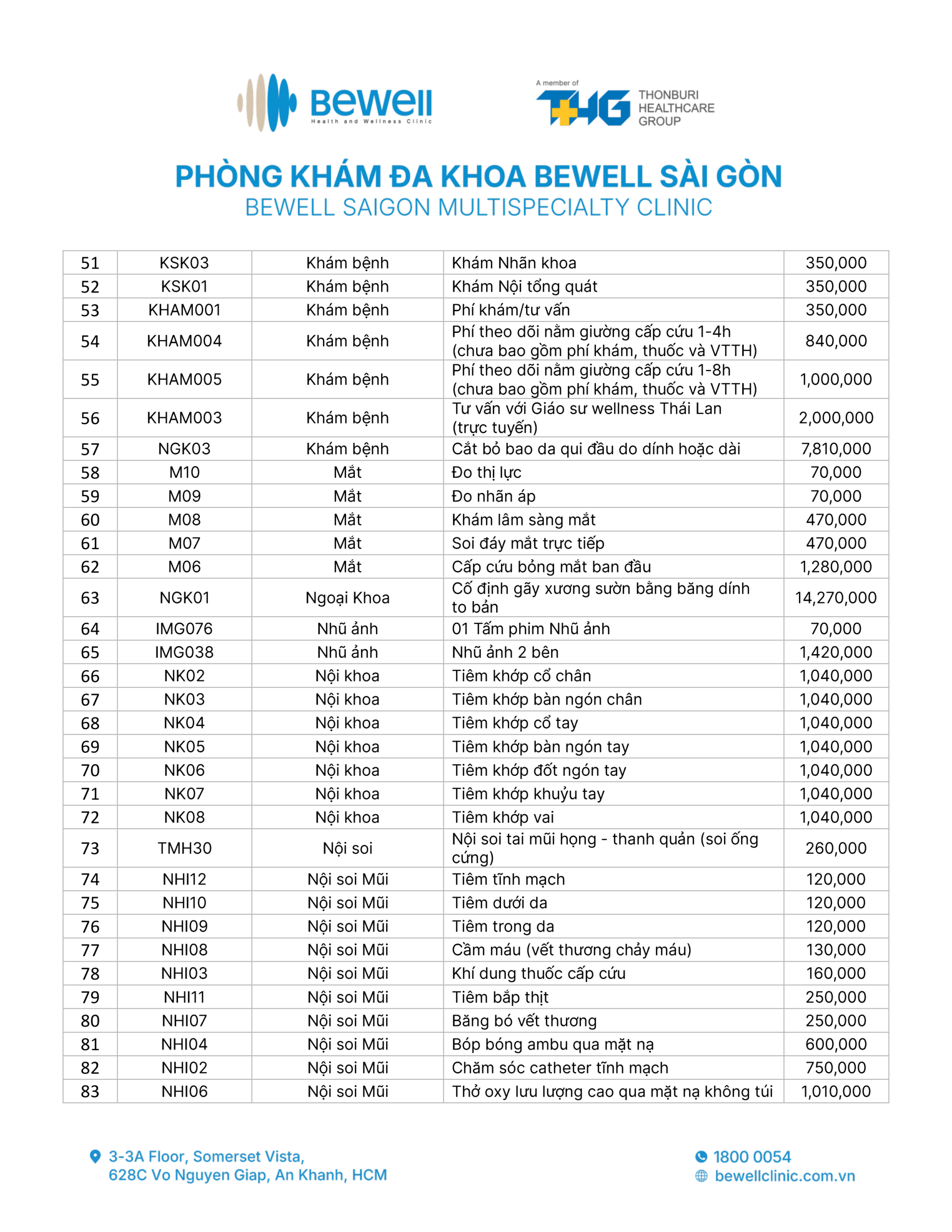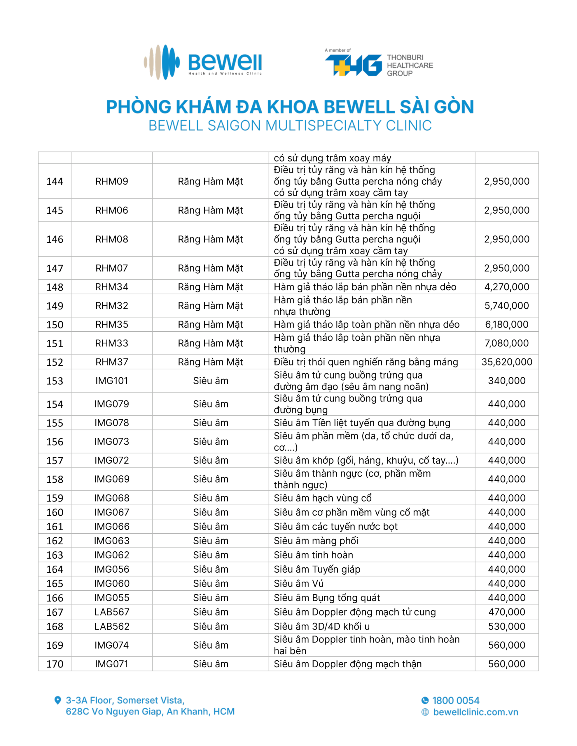 BẢNG GIÁ DỊCH VỤ
