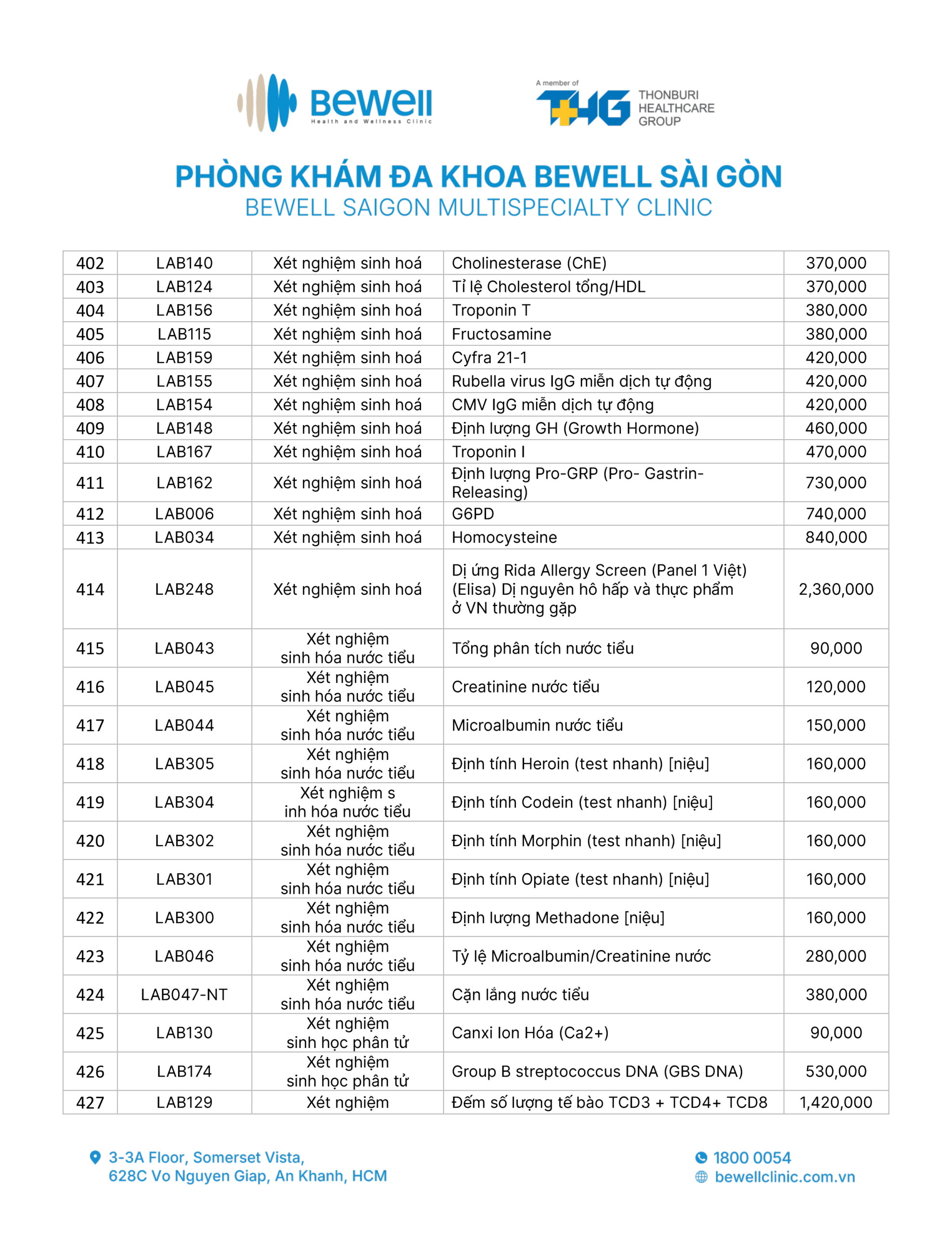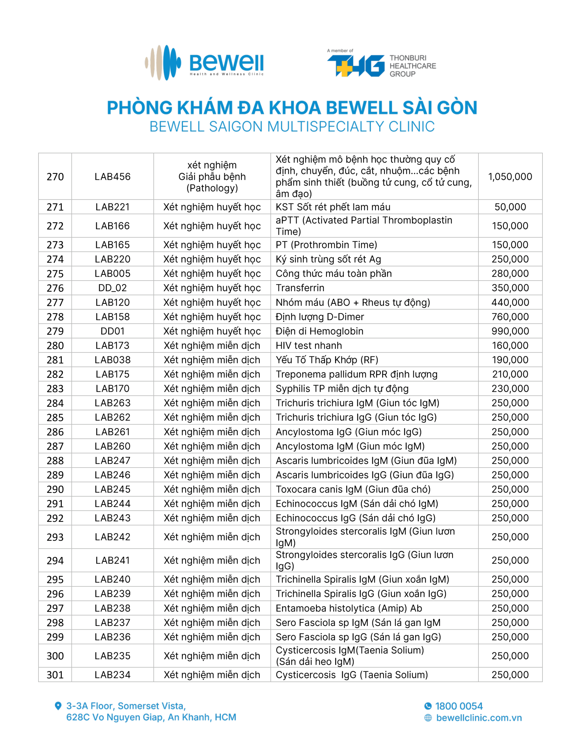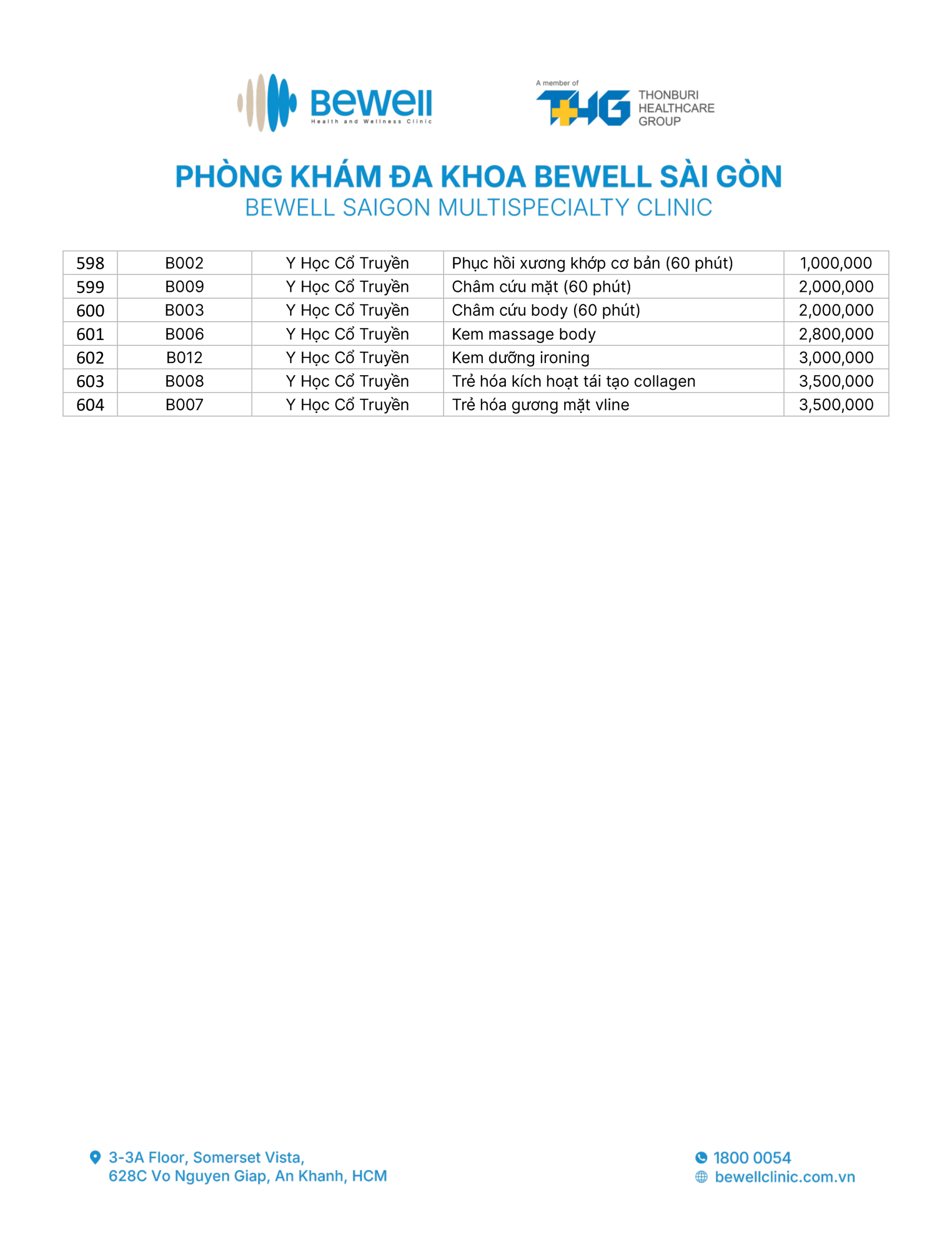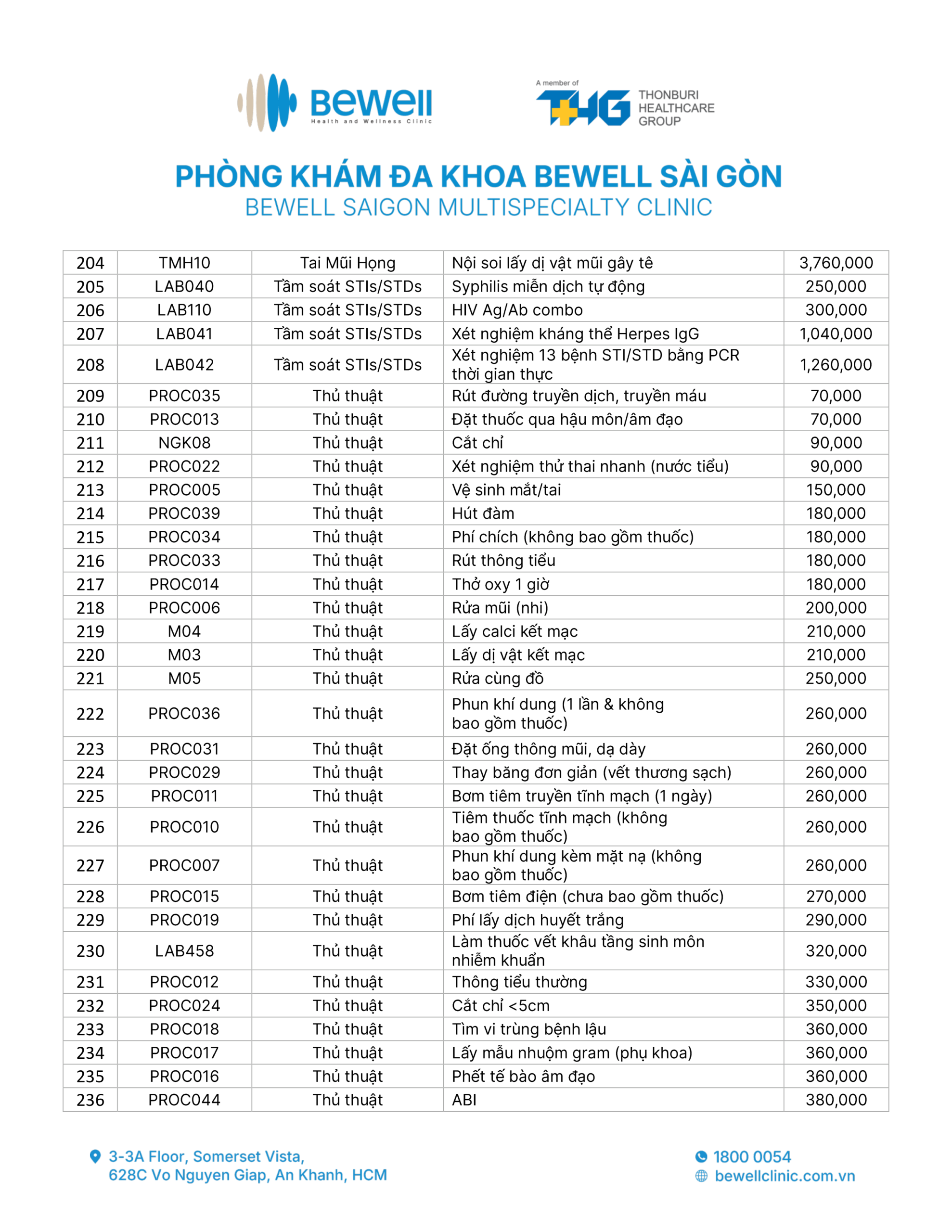 BẢNG GIÁ DỊCH VỤ