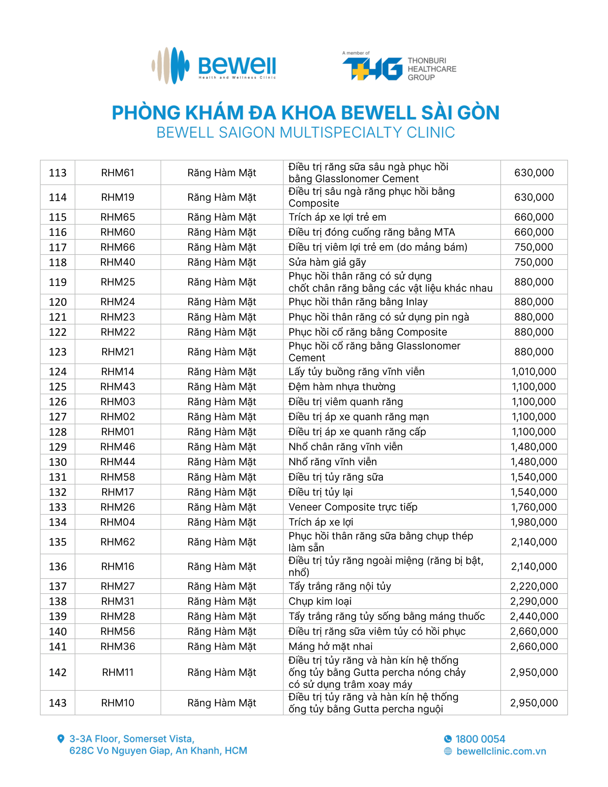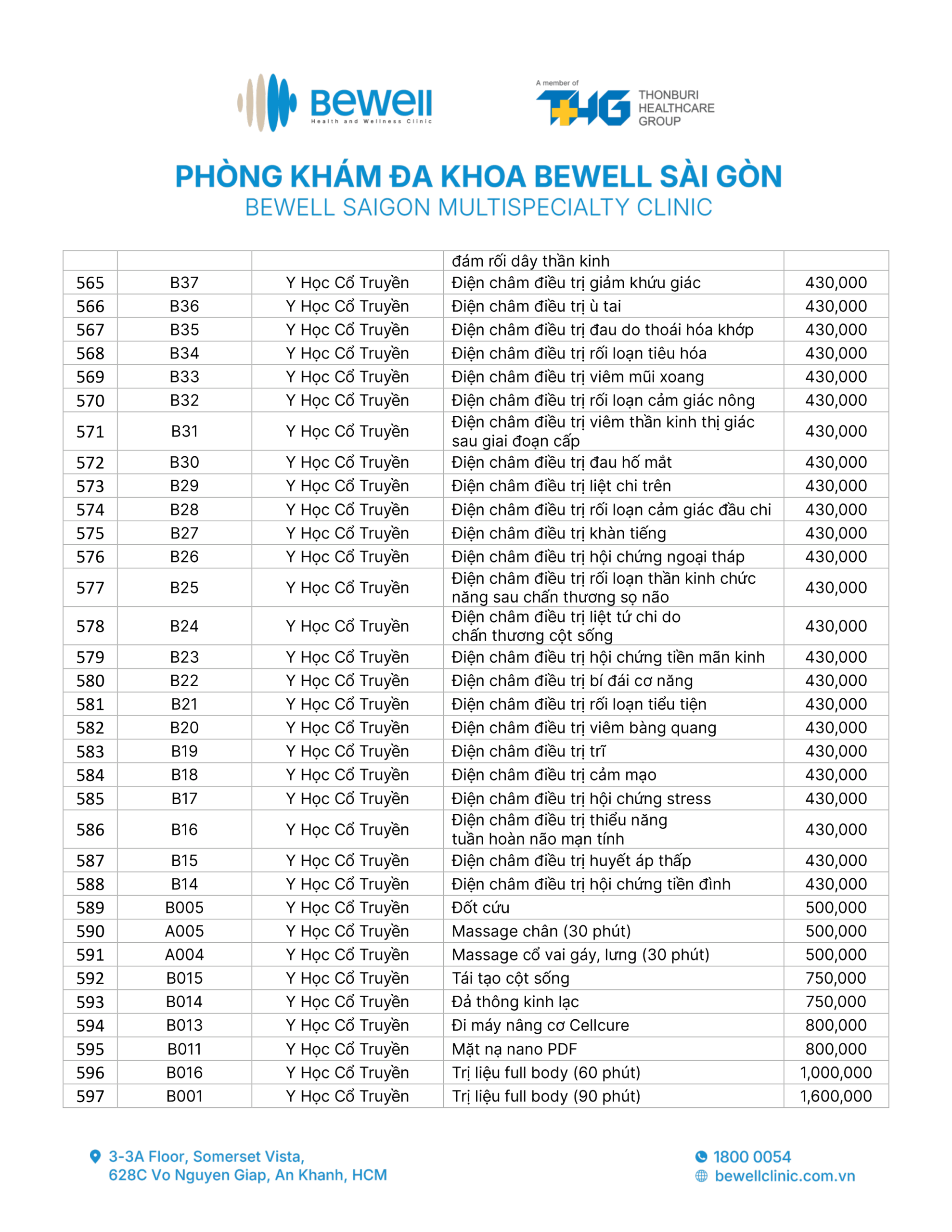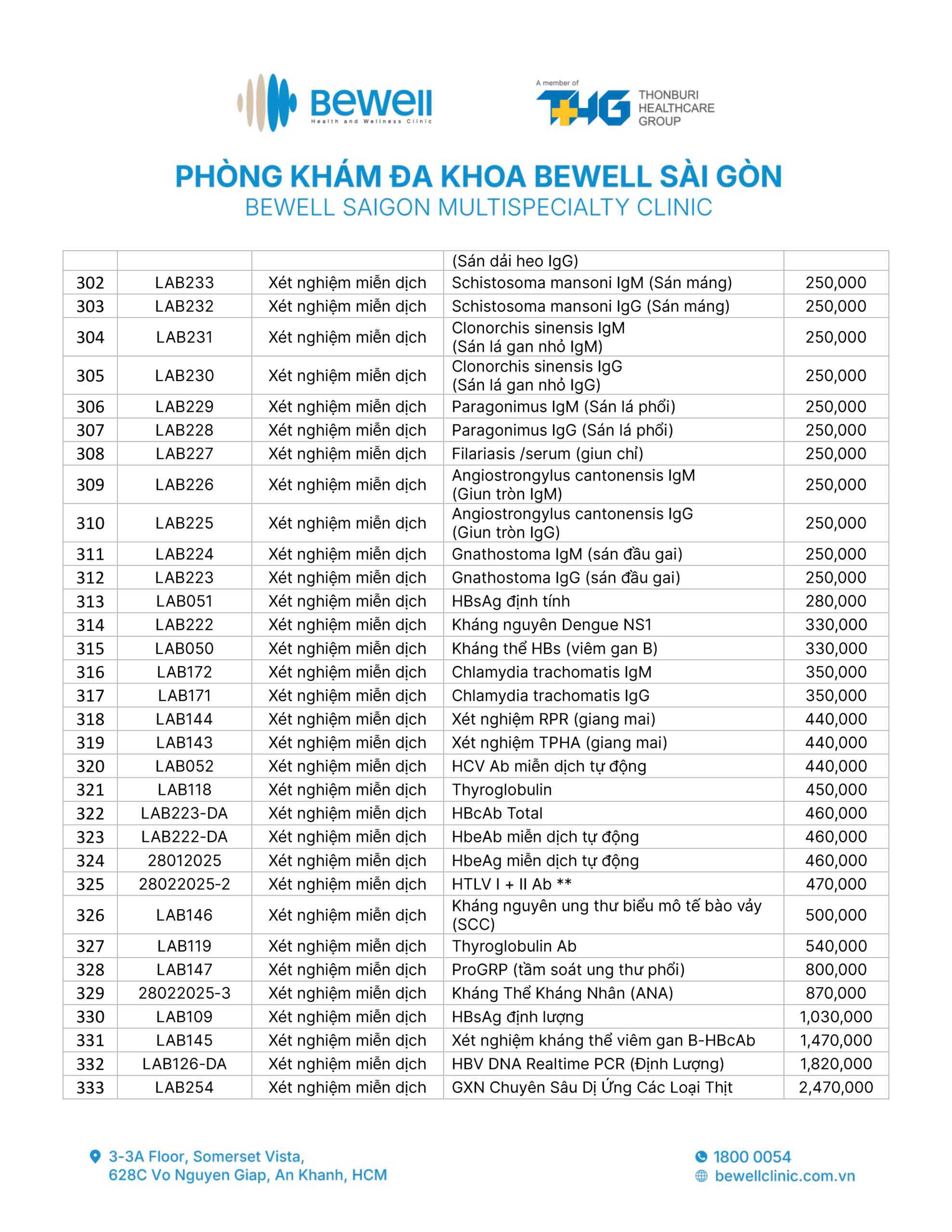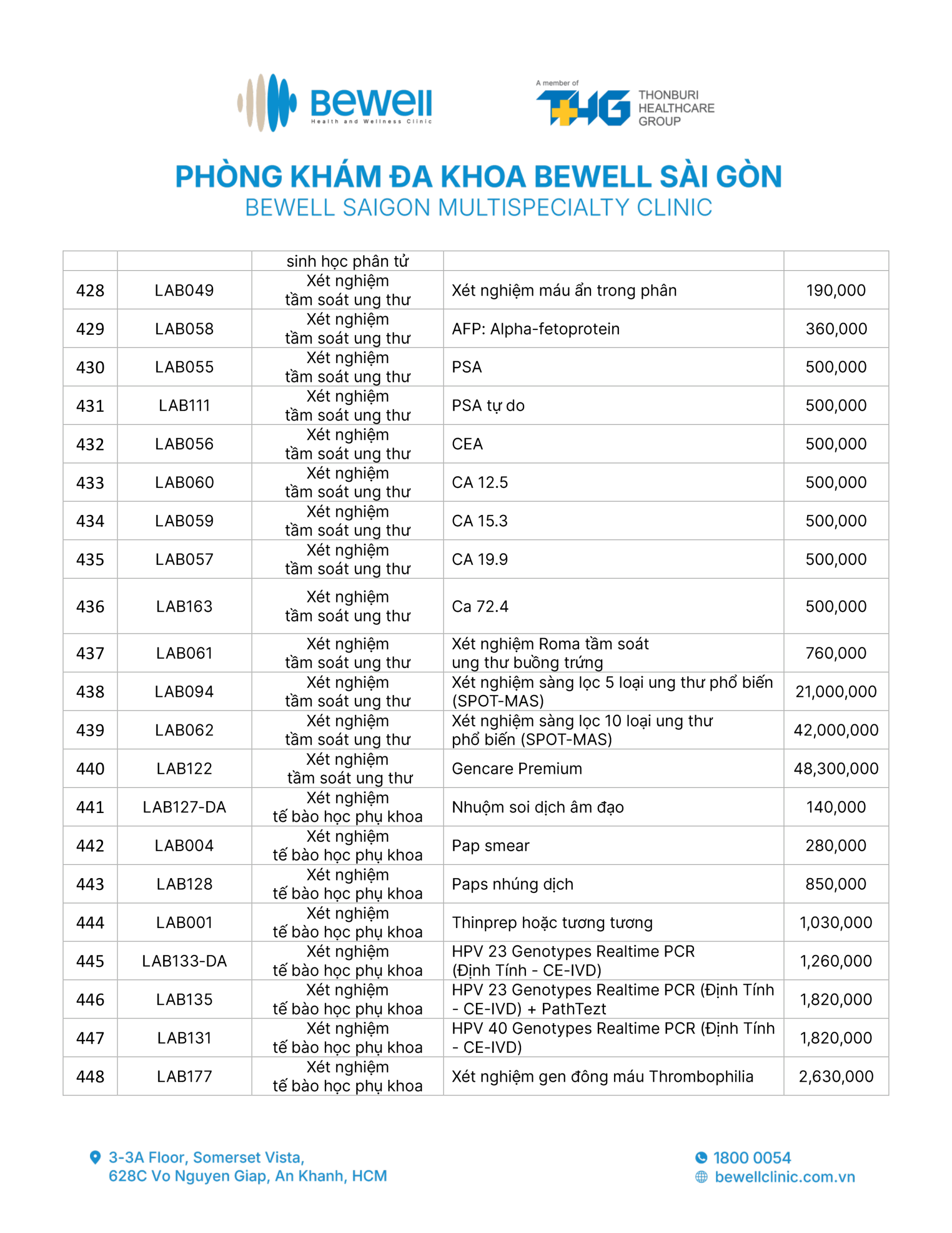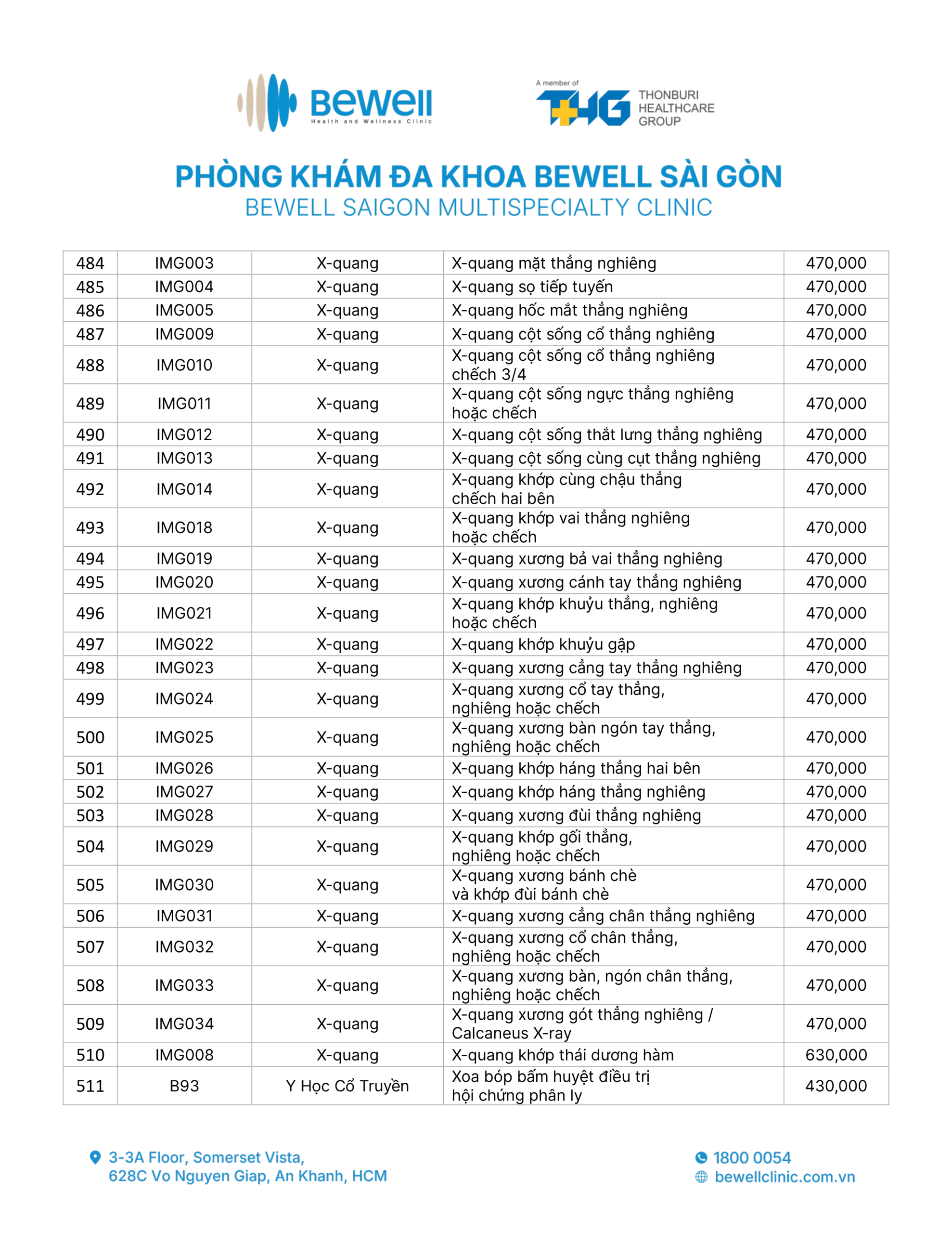 BẢNG GIÁ DỊCH VỤ